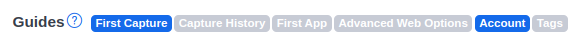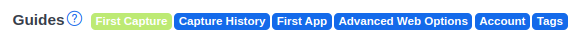 Guides in blue can be started right away. As you create your first capture, additional guides will be available. They will turn from gray to blue. Once completed, they will turn green.